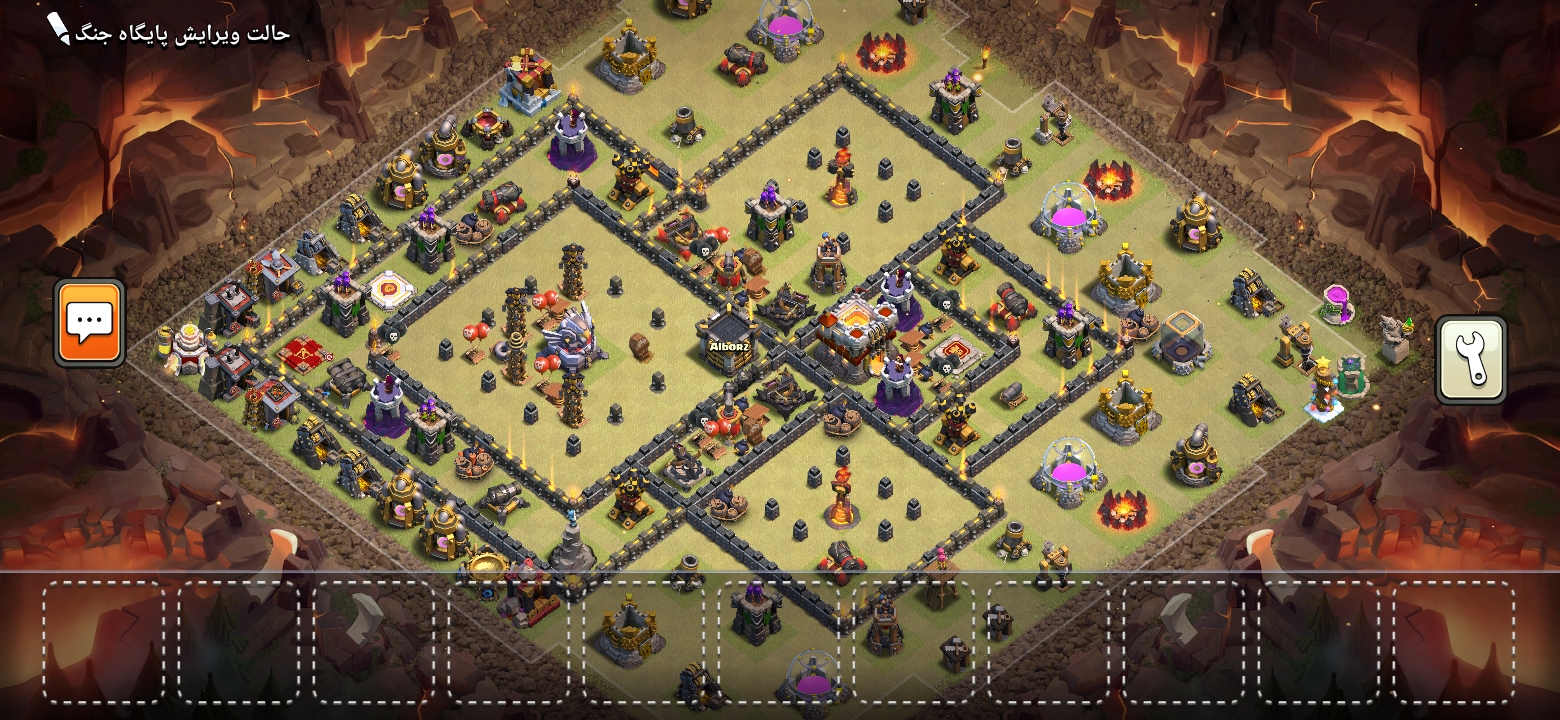 این مپ تاون 11 وار رو دوستان عزیز زحمت کشیدن و برای ما ارسال کردن. این مپ تاون 11 فوق قوی با چیدمان پراکنده خیلی مناسب وار هستش و امکان نداره حریفانی در این سطح تاون هال بتوانند شمارو شکست بدهند. در این مپ تاون 11 توپخانه عقاب نسبتا در مرکز زمین قرار گرفته و نوع چیدمان دیوار ها و تسلاهای مخفی که در اطراف آن قرار گرفته اند به خوبی از آن محافظت میکنند در نتیجه این توپخانه میتواند به شدت در تخریب مواثر واقع شود و حریف شکست میخورد.
