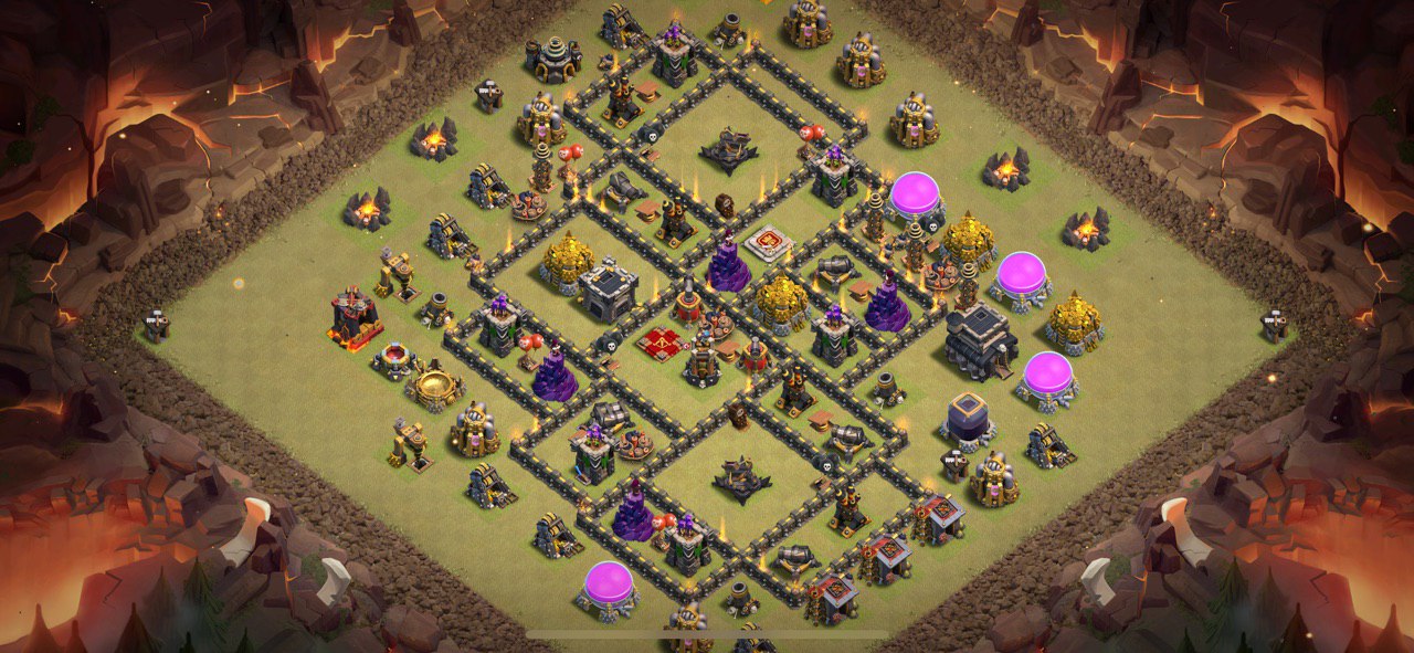 میتونم بجرات بهتون بگم بهترین مپ وار تاون 9 با چیدمان متراکم و غیر منظم این مپی هست که مشاهده میکنید. تاون هال بیرون قرار گرفته و این باعث طمع حریف شده و از یک سمت به شما حمله میکنه ولی نیروی های حریف نمیتوانند کل مپ را از بیین ببرند.