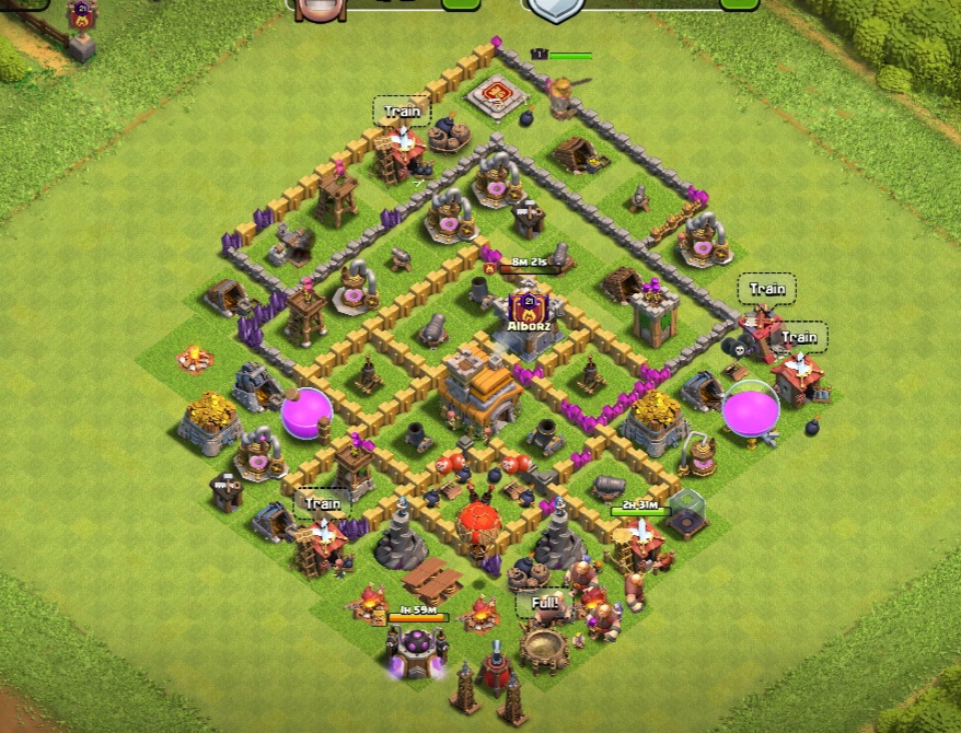 این مپ تاون 7 زمین خانه بازی کلش اف کلنز برای بالا بردن کاپ بسیار مناسب. در حالی که مخازن اکسیر و طلا در بیرون دیوار ها قراز دارند ولی زمانی که از این مپ استفاده می کنید می تونید مخازن خودتونو پر پر کنید. همیچنین حالت قرار گرفتن دیوار ها باعث سه ستاره نشدن این زمین شده و کاپ شما بالا می رود.