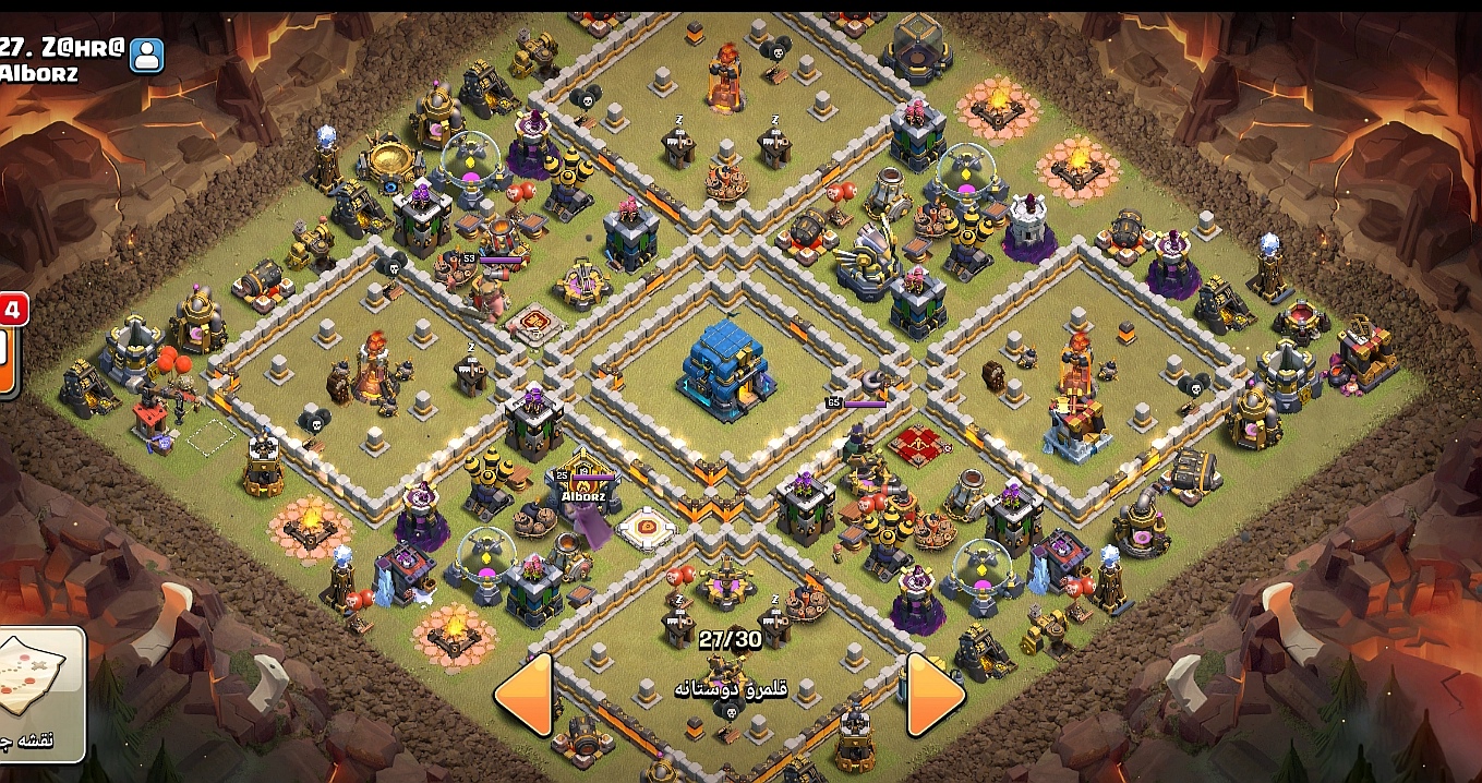 این مپ وار تاون هال 12 بسیار قوی و عالی هستش و میتونه حملات سنگین دشمن رو به راحتی دفع کنه و در مقابلش مقاومت کنه. از طریق لینک چیدمان دانلودش کنید.