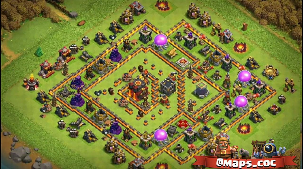این مپ تاون هال 10 بازی کلش اف کلن بسیار قوی و عالی هست به شکلی که حتی کسب دو ستاره از آن کاری سخت است. این مپ تاون 10 میتونه برای بالا بردن کاپ به شما کمک کنه. منابع در این چیدمان تاون 10 در لایه بیرونی مپ قرار گرفته اند که این امر باعث کند شدن حرکت دشمن شده و قدرت تخریب آن را کاهش می دهد.